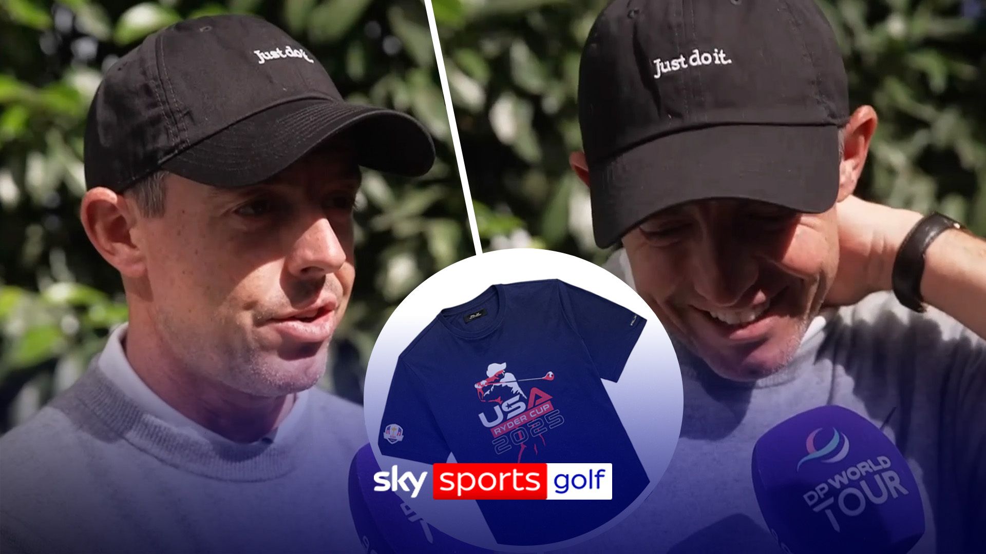 Rory McIlroy nói chuyện với Sky Sports ‘Jamie Weir khi anh nhìn về phía trước Ryder Cup vào cuối tháng 9 và phản ứng với chiếc áo phông Ryder Cup trông giống như một hình bóng của anh.