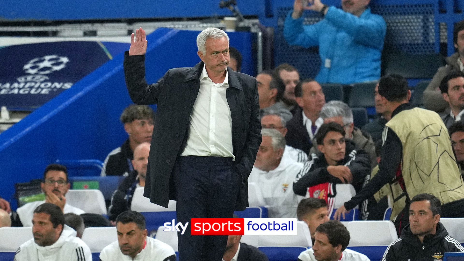 Cựu quản lý của Chelsea Jose Mourinho đã nhận được sự chào đón nồng nhiệt khi đội bóng hiện tại của anh ấy đến Stamford Bridge cho trận đấu Champions League của họ.